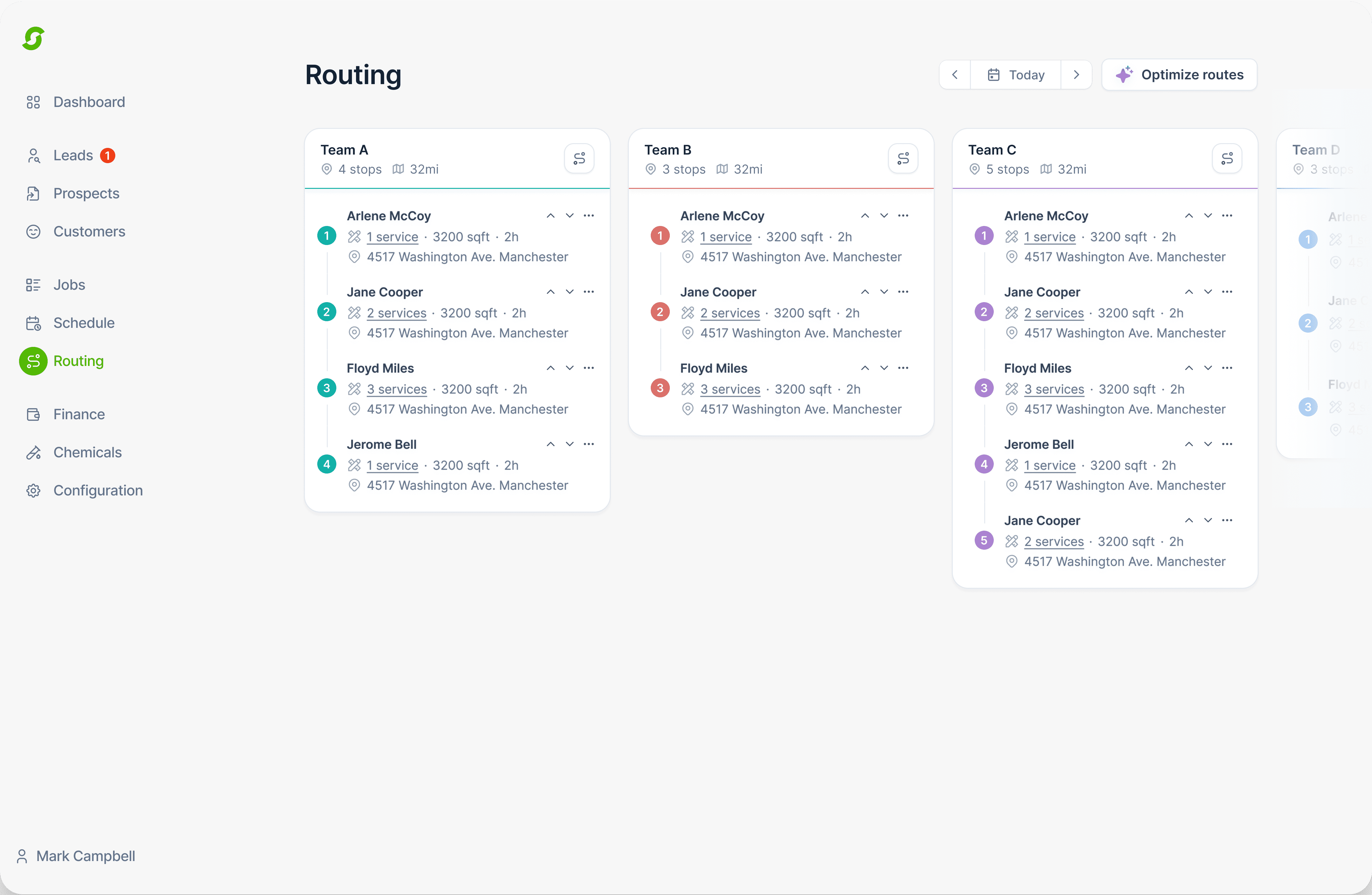 Route planning consumed 45 minutes daily for crews of 3+ teams