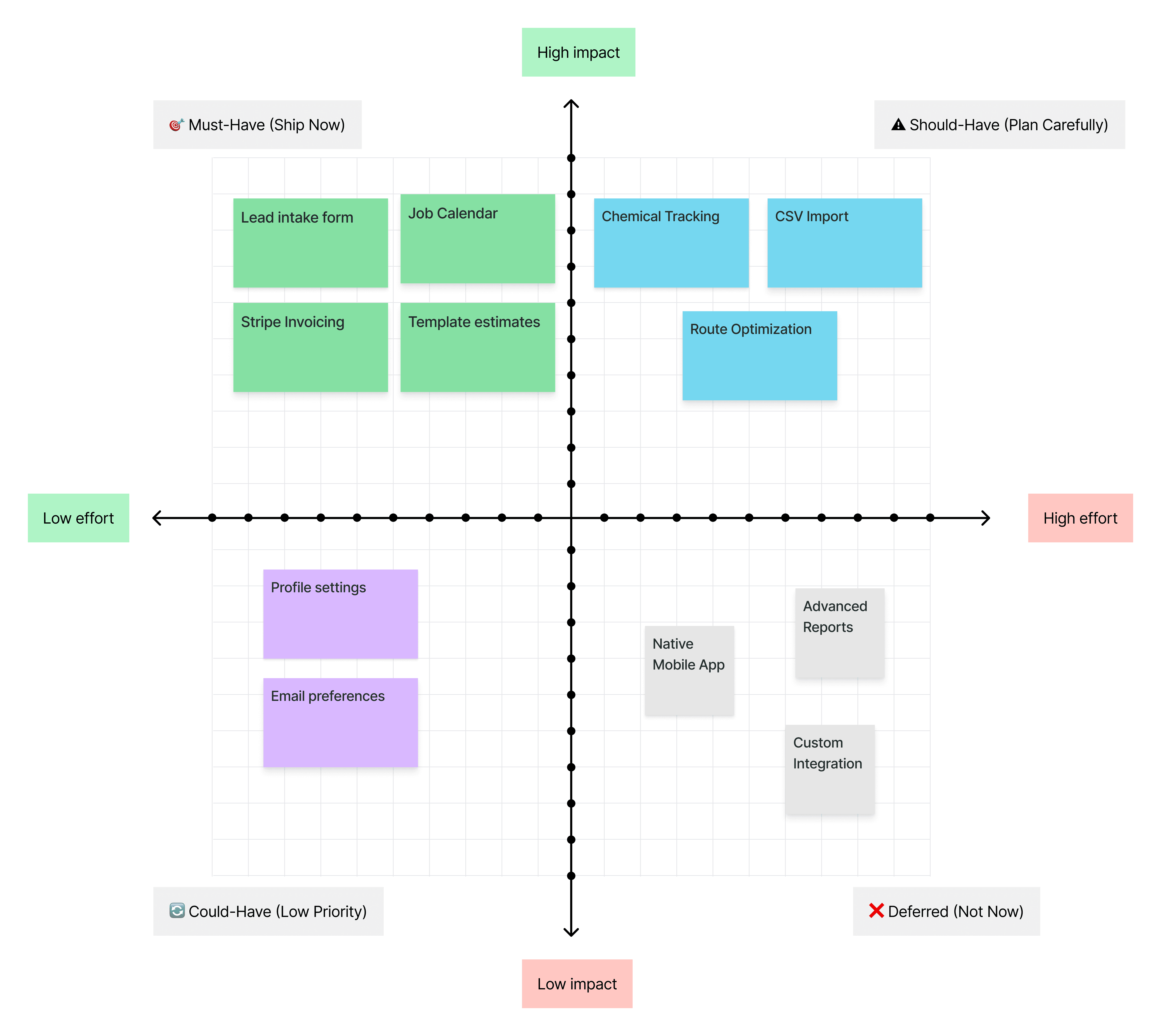 The audit revealed that most competitors either offer generic service-management features or focus on enterprise-level complexity, leaving small-to-mid landscaping businesses underserved. Key gaps included fragmented lead-to-payment workflows, limited support for landscaping-specific needs, and weak client-facing experiences. These insights helped define clear opportunities to design a unified, role-based platform that balances usability, operational depth, and transparency for both businesses and homeowners.